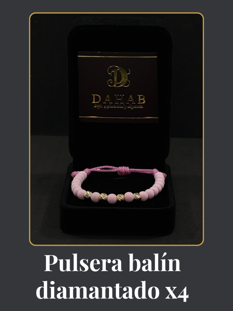 Pulsera balín diamantado x4 en caucho rosado, un diseño delicado y moderno que combina brillo y color con estilo. ¿Te encantó? Haz clic abajo y escríbenos por WhatsApp para conocer disponibilidad y precio.