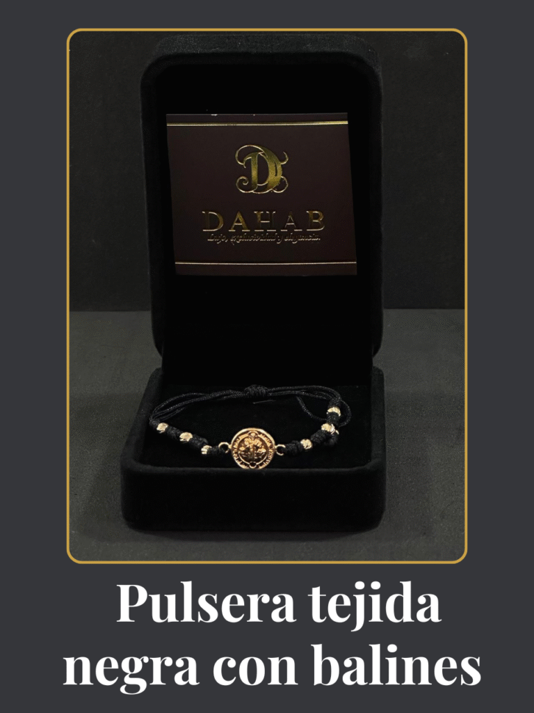 Pulsera tejida negra con balines diamantados x6 y medalla de San Benito. Un diseño con estilo y protección espiritual. ¿Te gustó? Haz clic abajo y escríbenos por WhatsApp para más detalles o disponibilidad.