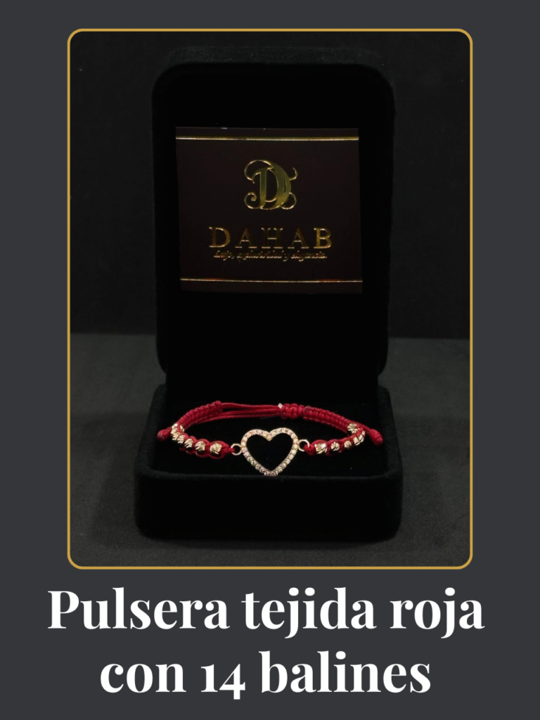 Pulsera tejida roja con 14 balines diamantados y un delicado dije de corazón. Un diseño vibrante que transmite amor y estilo. ¿Te gustó? Haz clic abajo y pregúntanos por WhatsApp. ¡Te asesoramos encantados!