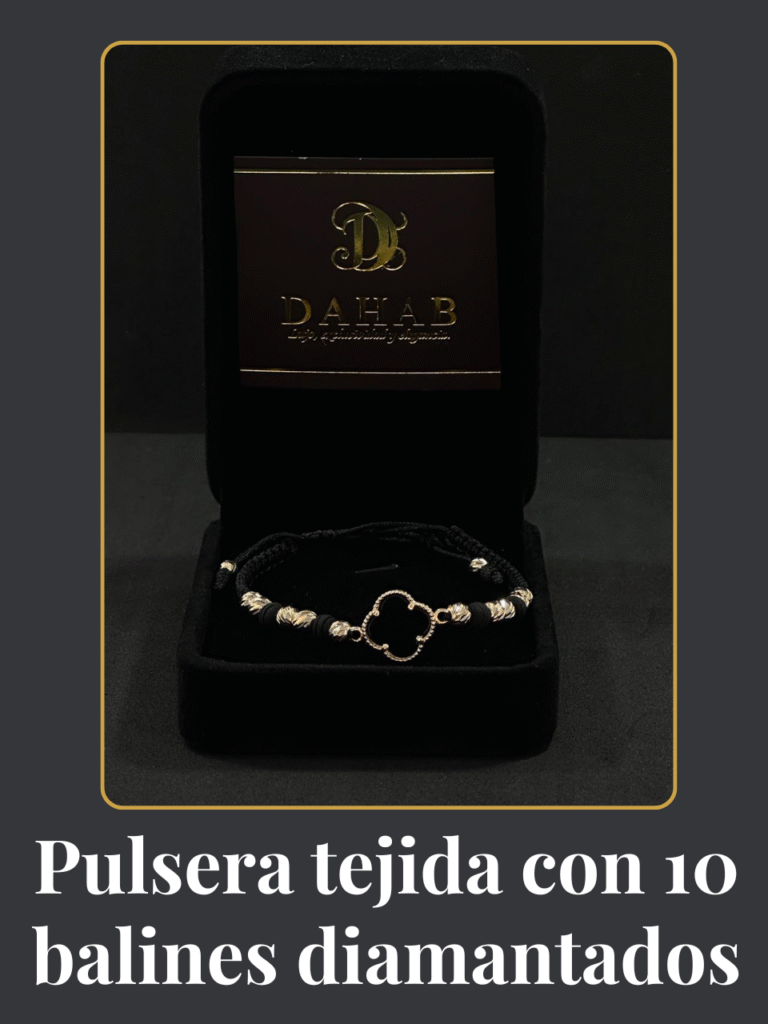 Pulsera tejida con 10 balines diamantados y un elegante dije Van Cleef negro. Sofisticación y estilo en una sola pieza. ¿Te interesa? Haz clic abajo y chatea con nosotros por WhatsApp para más información.